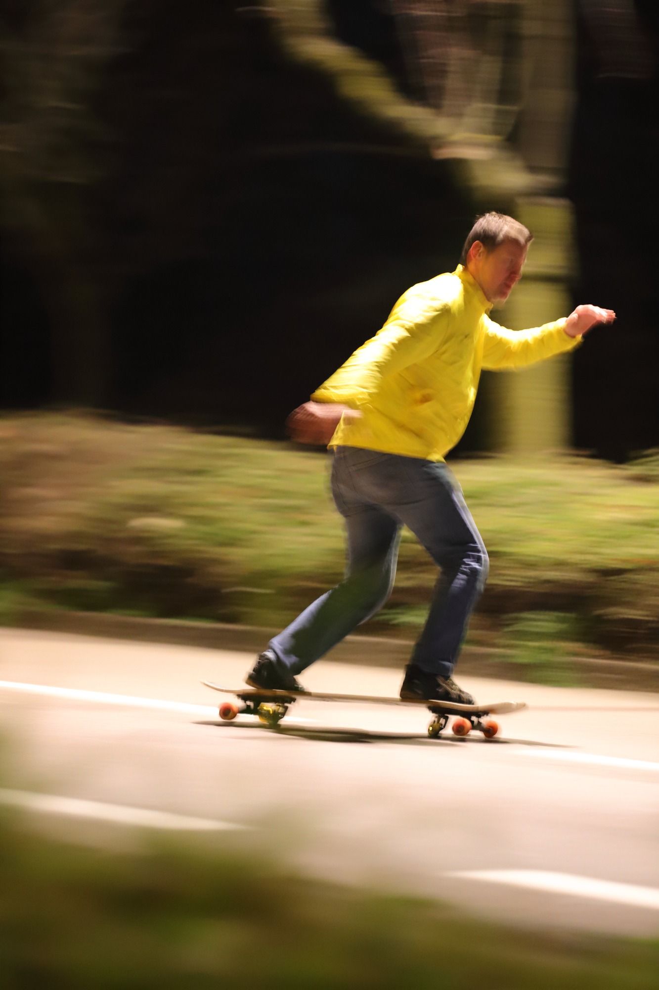 Tandis que certains dorment en rêvant à des voyages destinés au ski ou au surf, loin de chez eux, surfer sur la ville endormie à la lueur de l'éclairage publique... En attendant la pleine lune pour tout éclairage ? La liberté et la créativité du skateboard a des propositions à avancer devant la dérive climatique !
